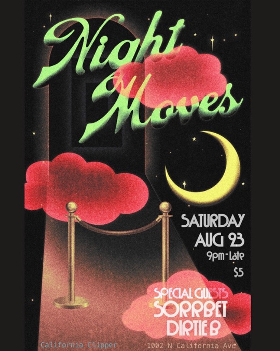 2026-01-17 22:00:002026-01-17 02:30:00America/ChicagoNightmovesNightmoves IRIS (special Guest) & Residents JESSE SANDWICH & ROSS KELLY $5The California ClipperThe California Clipperinfo@thecaliforniaclipper.com